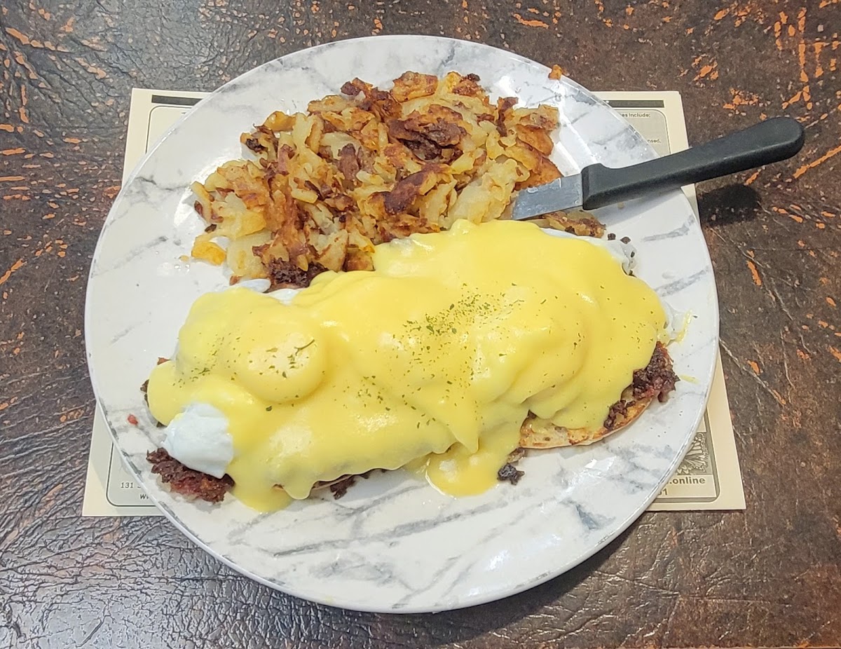 I cannot say enough great things about this place! We have been multiple times for breakfast and try something different each time. Eggs benedict and corned beef hash absolutely scrumptious! But the absolute best is getting their country breakfast with a little bit of everything and we upgraded to oatmea cinnamon raisin pancakes which were to die for! Wash it down with fresh squeezed oj they make right in front of you! We came for lunch and got an open faced rueben with fries and coleslaw best one I've ever had! We will DEFINITELY be back! Shavon was excellent too! Oh and PLENTY of free parking